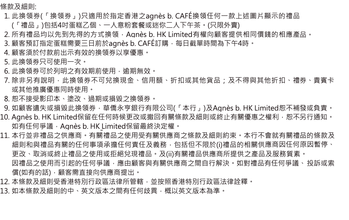| 憑此二維碼於agnès b. CAFÉ換領生日禮遇 |